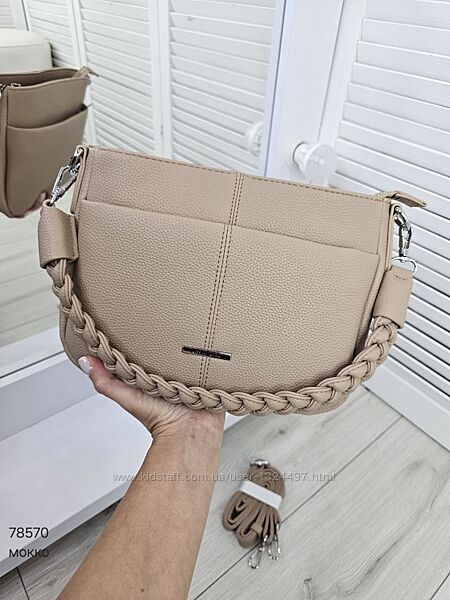 РОЗМІРИ: Ширина - 26 см, висота - 18,5 см, дно - 9,5 см + коротка ручка (довжина 55 см) і зйомний довгий ремінець