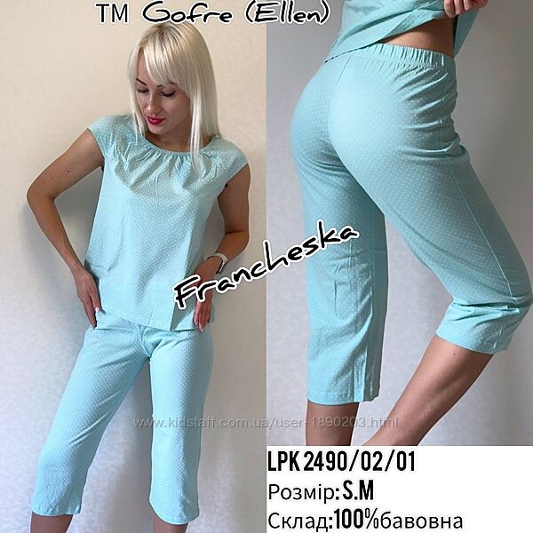 Одяг для дому від ТМ Gofre (ТМ Ellen) виробляється в Україні з використанням європейських бавовняних тканин. Комплекти потішать гарним сучасним дизайном, приємною кольоровою гамою та добротним пошиттям. Жіноча піжама Ellen (ТМ Gofre) стане родзинкою домашнього гардероба.