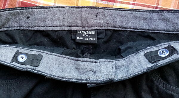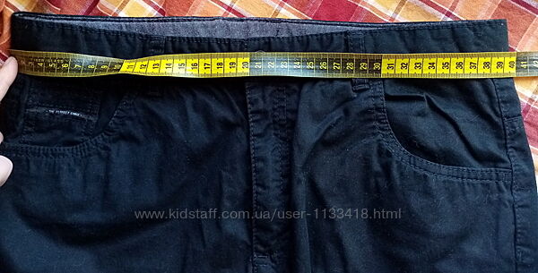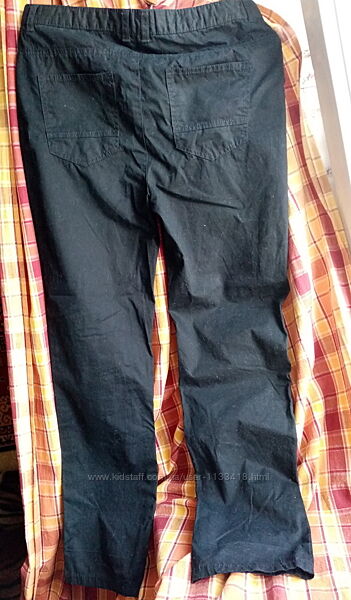 Легкі штанці на весну-літо-початок осені для хлопця-підлітка 13-14 р. середньої статури.Стан гарний, б/в пару сезонів. Заміри на фото. В поясі є утяжки з обох боків, можна на тонкішу дитину. Довжина вся/крокова 103/70 см.