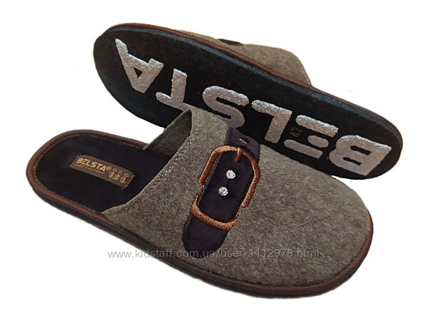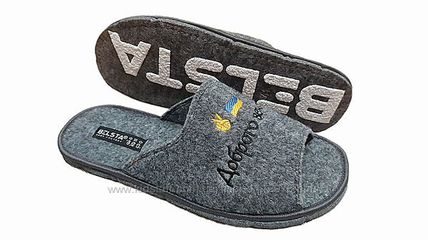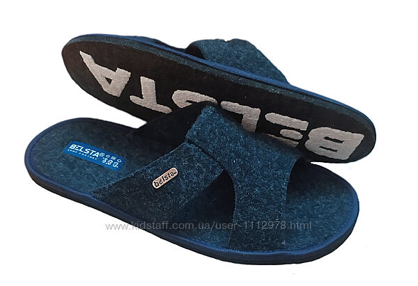 Мужские стильные тапочки Белста (Украина), сделаны из плотного войлока. Подошва - войлок, антискользящая - надпись Белста на подошве прорезиненная. Высота подошвы 1 см. Аккуратно прошиты и проклеены. Полнота средняя.Замеры по стельке (фото2-3):