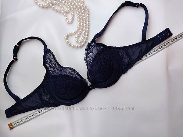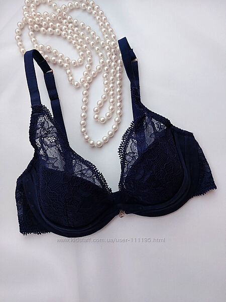 Этот потрясающий бюстгальтер с глубоким вырезом, созданный в сотрудничестве с Рози Хантингтон-Уайтли, одновременно стильный и практичный. Изысканная кружевная отделка покрывает чашки и грудь, а прозрачная ткань проходит под чашками, создавая по-настоящему особенный бюстгальтер. Косточки с мягкой подкладкой приподнимают и формируют грудь, обеспечивая при этом хорошую поддержку в течение дня. Этот кружевной бюстгальтер, украшенный фирменной отделкой Рози, поможет вам выглядеть гламурнее. К сожалению, бирка с размером срезана. Замеры чашки на фото. Длина пояса в спокойном состоянии 59см, тянется до 77см. Предположительно идет на размер 70С. Отличнейшее состояние. *** Оплата на карту Приватбанка. Доставка Новой почтой, Укрпочтой. Оплата за доставку - при получении. Возврата и обмена нет.