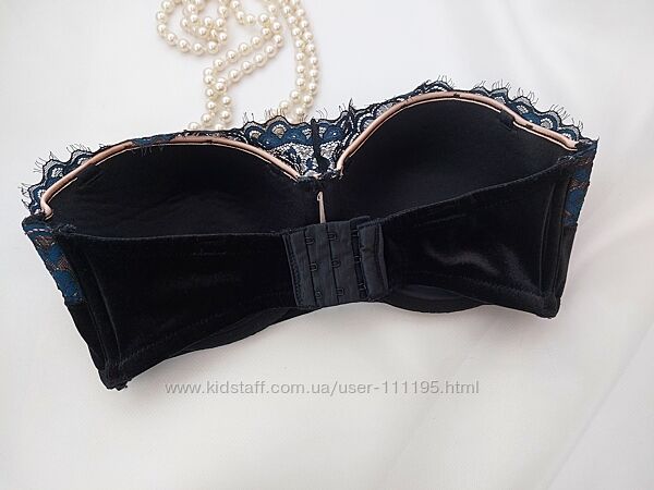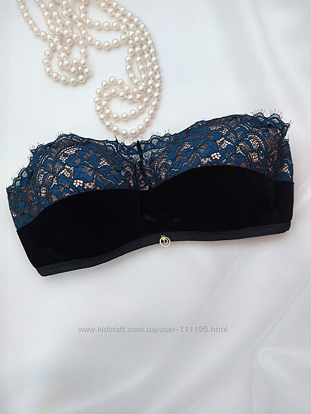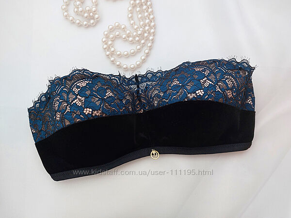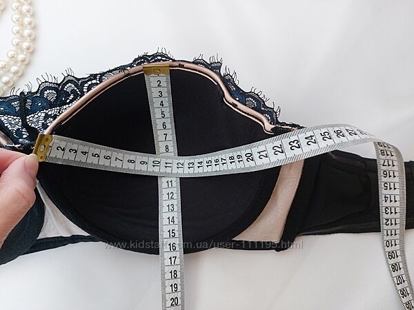 Роскошный бархатный бюстгальтер обрамлен по верху кружевами на контрастных бежевых чашках. Силиконовые полоски для лучшей фиксации лифа, при ношении без бретелей. Чашки на косточках и поролоне. Застежка 3 крючка на три позиции. Размер 75E. Смотрите замеры чашки на фото. Длина пояса в спокойном состоянии 61см, тянется до 85см. Идеал. Отсутствуют бретели и стрепы. Бретели подойдут классические черные. *** Оплата на карту Приватбанка. Доставка Новой почтой, Укрпочтой. Оплата за доставку - при получении. Возврата и обмена нет.