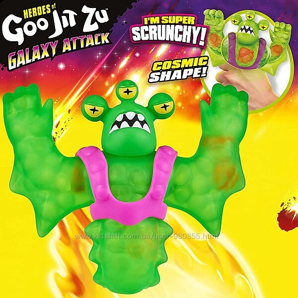 Стискайте, хлюпайте, розтягуйте та збирайте всі сім нових фігурок Galaxy Attack! Настав час дізнатися, хто правитиме клейким Всесвітом!