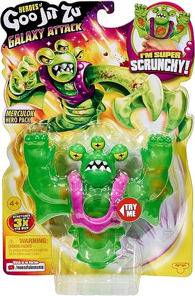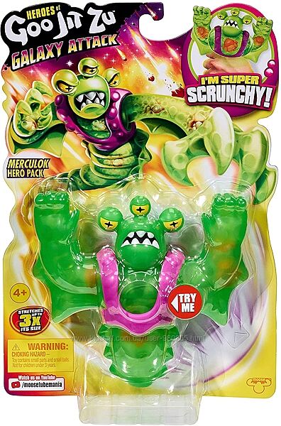 Зустрічайте Меркулок. Він супер скранчі! Наповнений водяними кульками, коли ви хлюпаєте його, водяні кульки випирають з-під його шкіри та показують інопланетних паразитів усередині нього! Цей галактичний жулик має силу, щоб знищити наших героїв Goo Jit Zu за допомогою інопланетної атаки! Зі своїми трьома очима та інопланетною формою Меркулок не схожий на інших наших земних героїв!