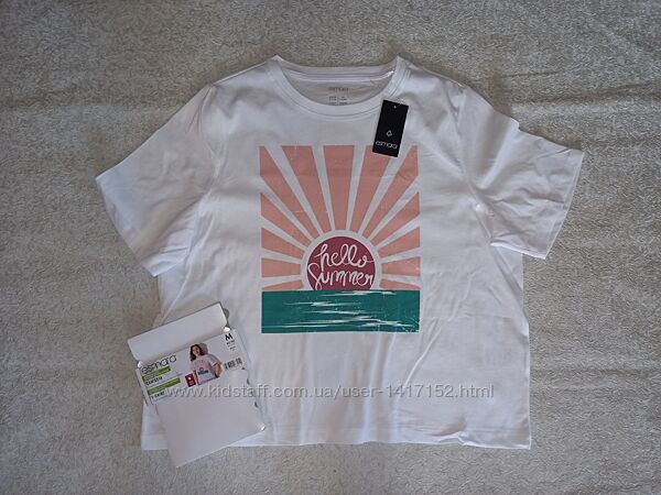 В наявності футболка жіноча широкого крою від німецького бренда Esmara, торговий дім Lidl. Матеріал: 100% бавовна. Розміри: М 40/42; L 44/46. М 40/42: довжина по спині 56см, ширина під руками 54см., від плеча до плеча 38см. L 44/46: довжина по спині 58см, ширина під руками 60см., від плеча до плеча 40см.