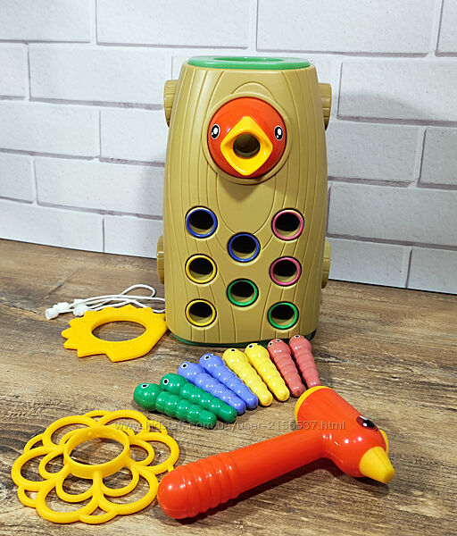 Хутчіш, ходімо годувати пташку🐥 Іграшка має 3 функції: каталка, годування пташки магнітними черв’ячками за допомогою молоточка та стукавка. Черв’ячки також допоможуть малечі вивчити нові кольори🌈Рекомендований вік: 1,5 роки+