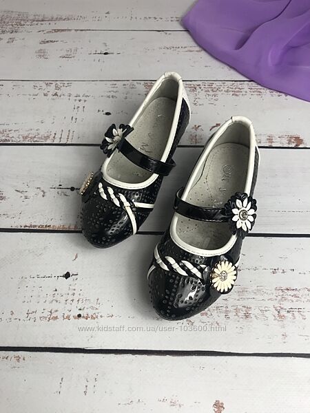 Подробное описание: Туфлі дитячі для дівчинки КУМ 25р - 17.5 см Чорно-білий 998