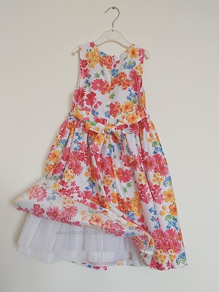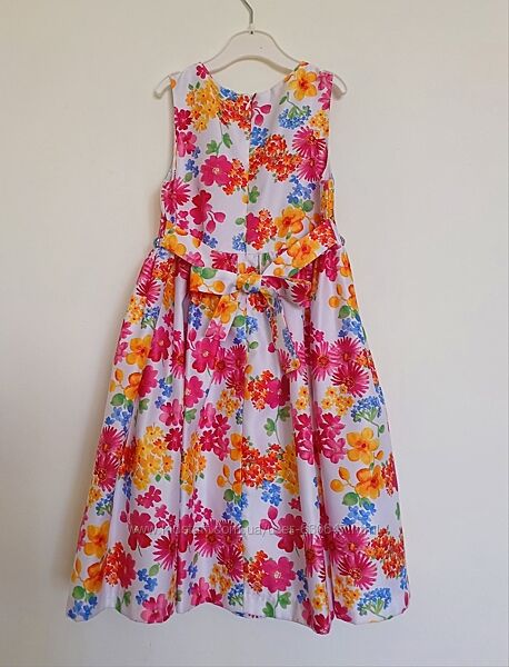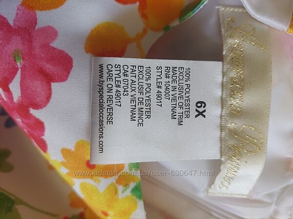 Продам платье Anerican Princess после дочки. Очень яркое и нарядное, надевалось на праздник весны. Есть подкладка, есть небольшой слой фатина. Смотрится очень красиво. Сзади по спинке змейка и на талии завязывается бант. На части фото цвет немного искажен, подписала фото, где более точная цветопередача Размер по бирке 6х. Полуобхват по талии 32 см, длина по середине спинки 68 см. Нюанс - спереди есть пара зацепок, но они практически не заметны. Перешлю после оплаты на карту. Возврата нет.