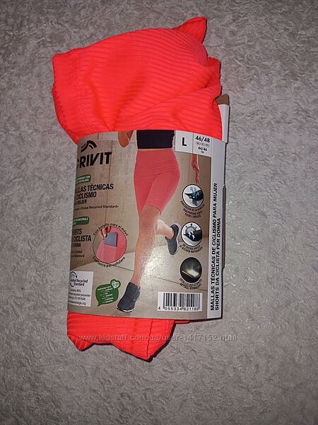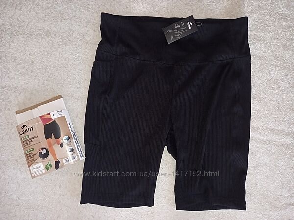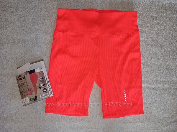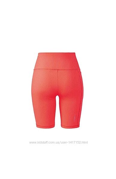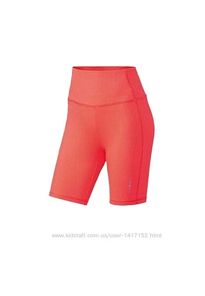 В наявності спортивні шорти в рубчик від німецького бренда crivit. Виготовлені на 85% з переробленого матеріалу. Оптимальна посадка, яка зберігає форму завдяки бренду LYCRA®. Вони швидко сохнуть і регулюють вологість. Колір: Корал; чорний. Є світловідбиваючі деталі на коралових. Збоку маленька кишеня. Матеріал: 85% поліестер (перероблений), 15% еластан (LYCRA®). Розмір L 44/46: довжина 47см, ширина по поясу 39см. Заміри без натяжкі.