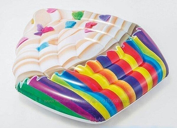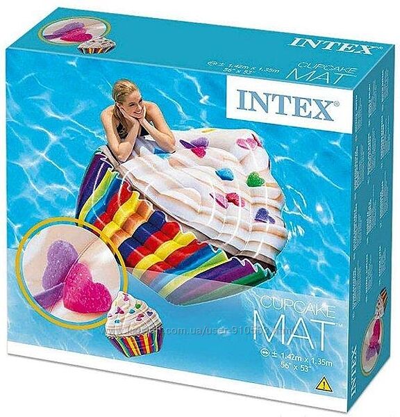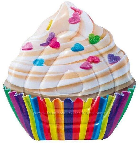 Стильний надувний пліт у формі капкейку (intex 58770 Cupcake). Завдяки незвичайному дизайну він обов´язково виділятиметься серед інших пляжних аксесуарів. Розміри: 142х135см.Вікова група: 8+