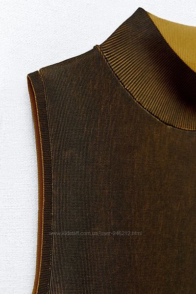 Дуже цікава трикотажна сукня Zara з останньої колекції!Сукня коричнева, всередині помаранчева. І коли натягується, з´являється цікавий перелив.