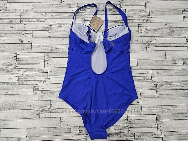 Суцільний купальник з декоративними кантами із контрасної мікрофібри, без пуш-ап для жінок з пишними формами:- кроєна чашка з відкритим декольте;