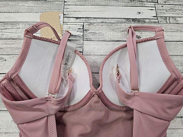 Суцільний купальник балконет з комбінації фактурного полотна та гладкої мікрофібри з пуш-ап для жінок з невеликим та середнім розміром грудей:- формована чашка з поролоновим пуш-ап;