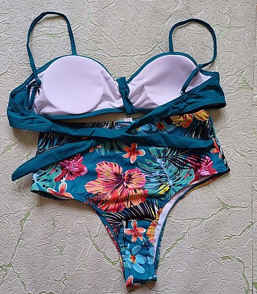 Яркий роздільний купальник з високою талією. В бюстгалтері з´ємні поролонові чашечки, бретельки регулюються, позаду зав´язується ( можна регулювати об´єм, труси з високою талією, передня частина на підкладці. .Розміри: