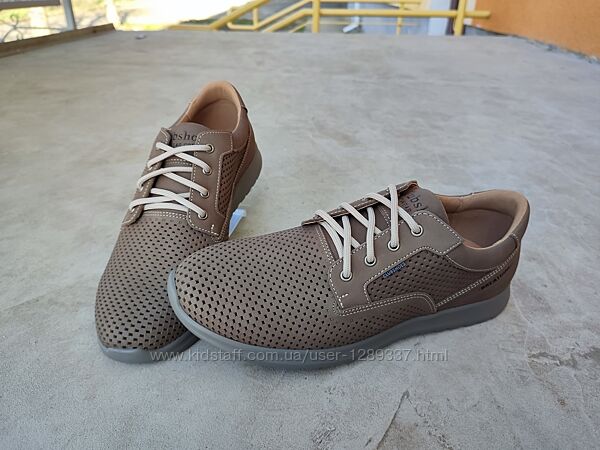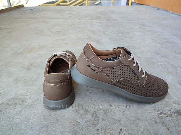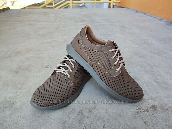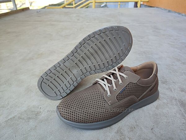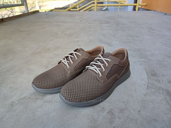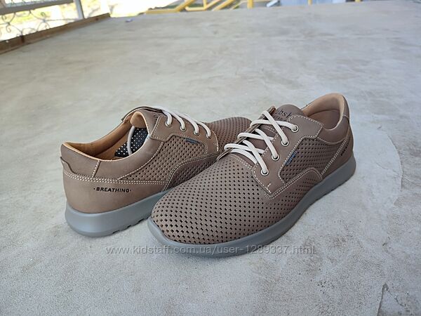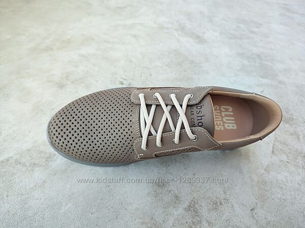Мужские летние туфли Clubshoes бежевые из перфорированной мягкой натуральной кожи (нубук) на удобной гибкой подошве.