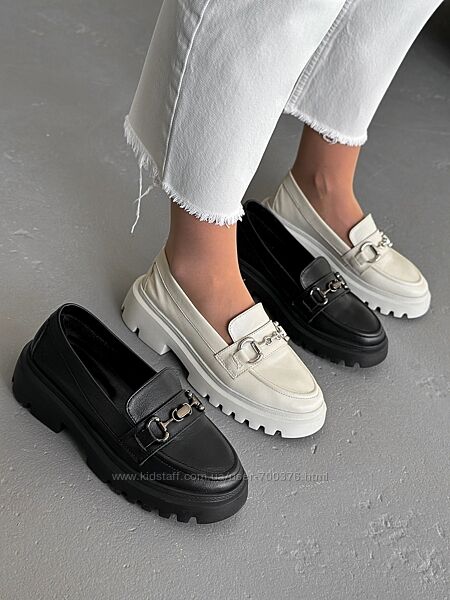 Туфли лоферы Klara, натуральная кожа, айвори/черные