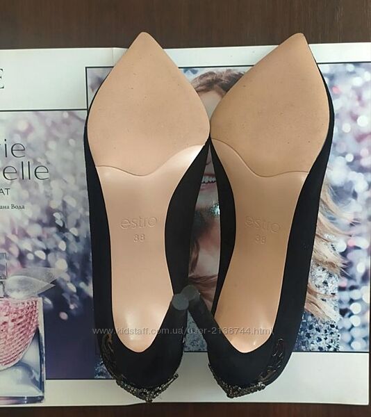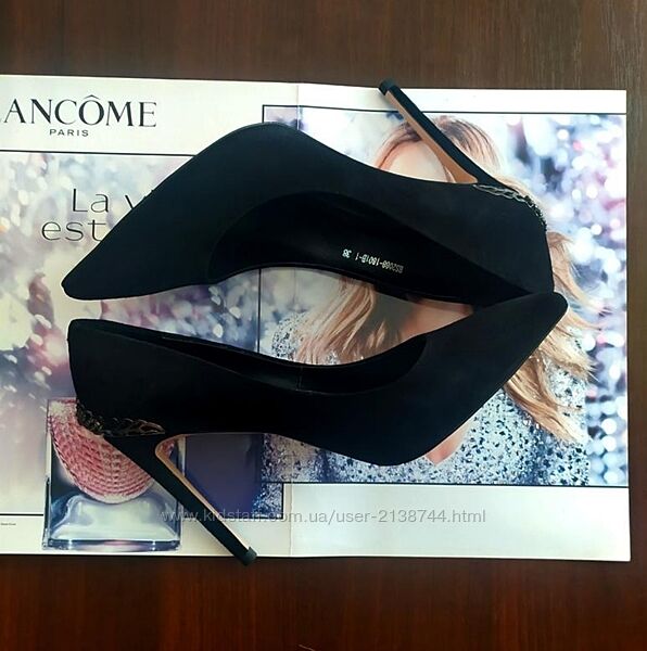 Туфлі - просто бомба💣Натуральна замша, насиченого чорного кольору, з красивою металевою прикрасою позаду (всі камінчики на своїх місцях)