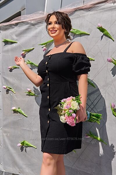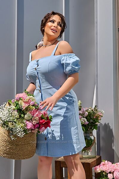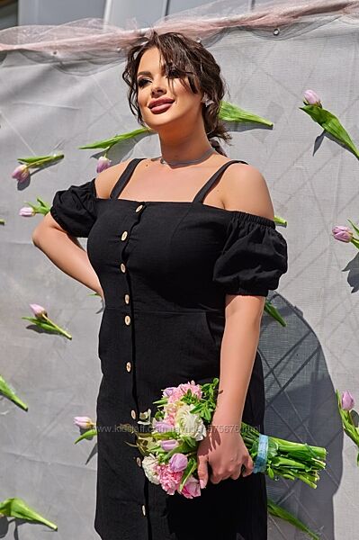 р.48 до 62р. Сукня сарафан льон на бретелях
