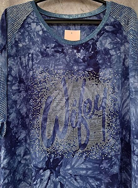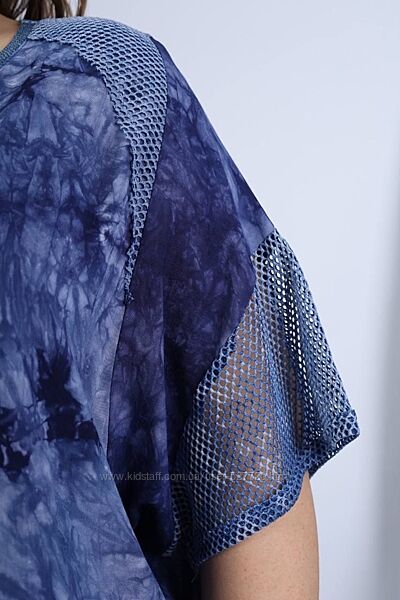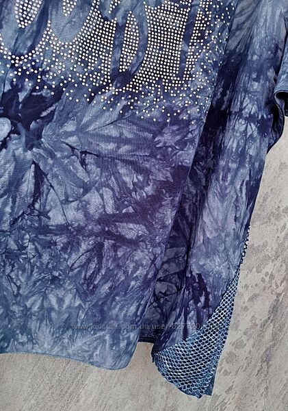 НАЛИЧИЕ ПО РАЗМЕРАМ УТОЧНЯЙТЕ ПОЖАЛУЙСТАЖенская легкая туника свободного прямого кроя спереди декорирована стразами. Рукав "летучая мышь", выполнен из эластичного материала сетка,по бокам предусмотрены небольшие разрезы.