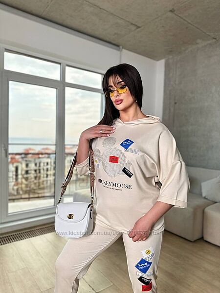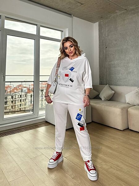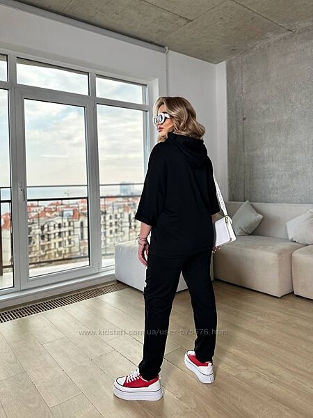 Костюм жіночій вільного крою (з капюшоном, кофта фасон "летюча миша", брюки на манжеті)Розміри