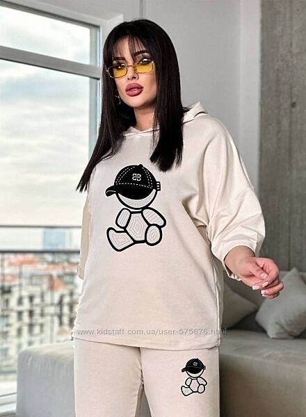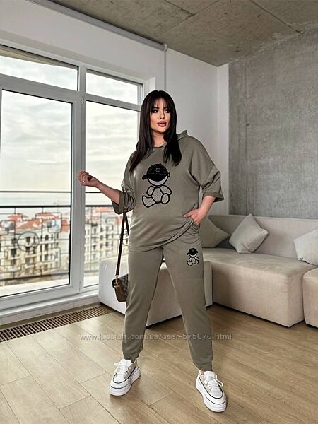 Костюм жіночій вільного крою (з капюшоном, кофта фасон "летюча миша", брюки на манжеті)Розміри