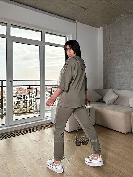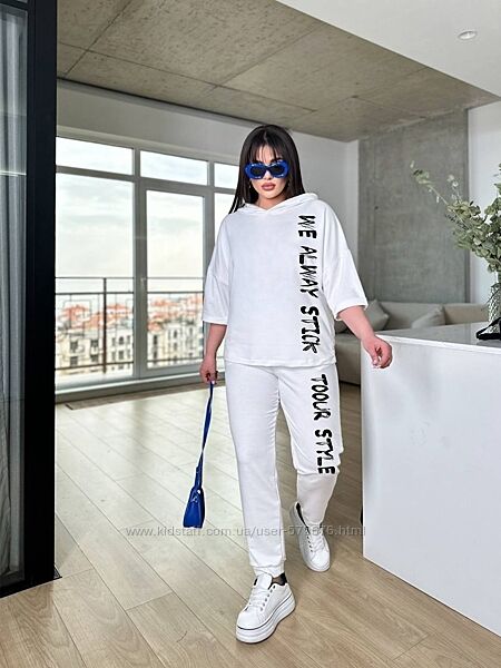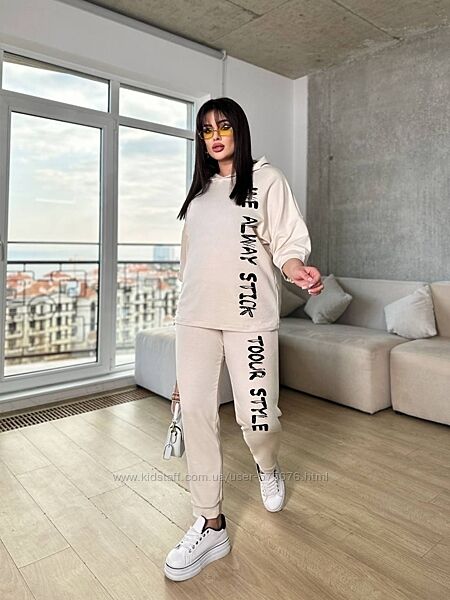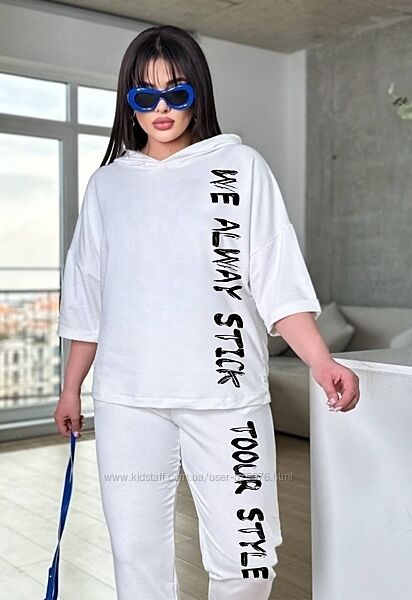 Костюм жіночій вільного крою (з капюшоном, кофта фасон "летюча миша", брюки на манжеті)Розміри