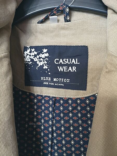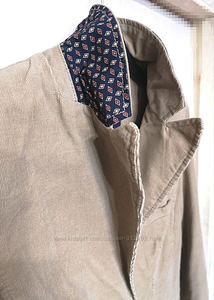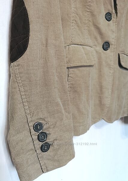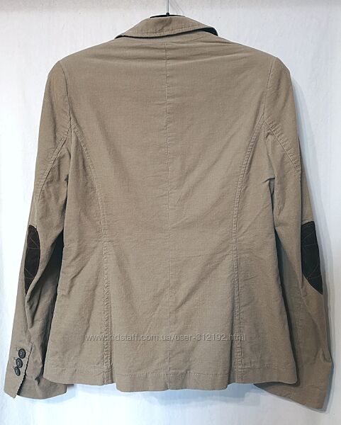 Жіночий вельветовий (мікровельвет) жакет в стилі кежуал. Новий з етикетками. Бавовна 100%. Яскрава контрастна підкладка (також бавовна 100%) Розмір 36-38, тобто S. Рукава можна підкатати підкладкою назовні, таким чином змінити образ. Те ж можна зробити з кишенькою. І така ж підкладка на звороті коміра. Експериментуйте! Всі кишені функціональні. Колір мокрого піску.Заміри такі: НОГ~46,5см; НОТ-43см; НОС-51см; довжина рукава- 63см; довжина по спинці-61см; довжина від верхньої точки плеча-63см; плечі-39см.