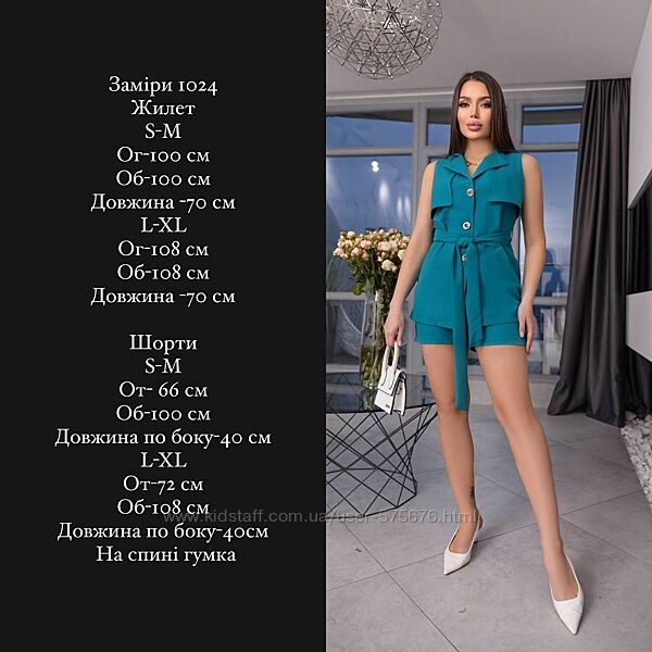 Подробное описание: S-M, L-XL Костюм жилет та шорти креп-костюмка