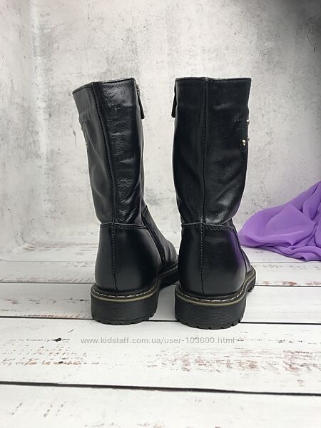Основним матеріалом для виготовлення такої модельки є якісна екошкіра з перфорованним візерунком, яка забезпечує хороший повітрообмін, щоб ноги дитини завжди почували себе комфортноУтеплювач – м´яка повсть на всю висоту чобота, знімна устілка – також повстяна