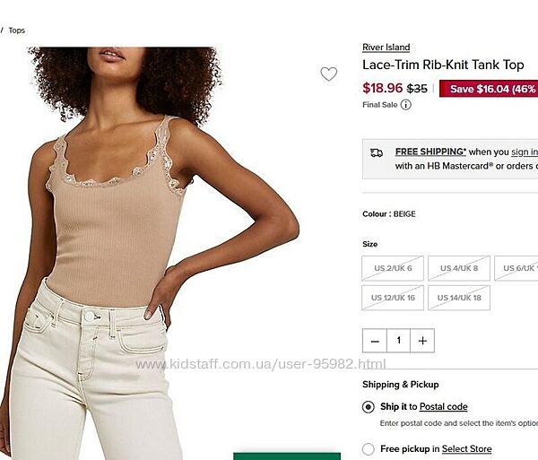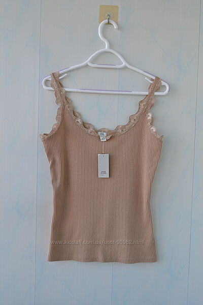 Подробное описание: Базовая майка в рубчик с кружевом River Island
