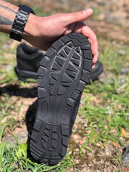 Кросівки військові тактичні чорні з натуральної шкіри та текстильної сітки. Сезон: весна, літо, рання осінь.Особливість: посилена прогумована накладка на носку.