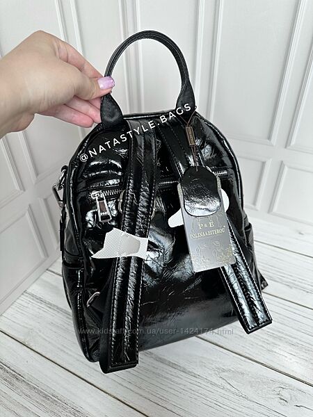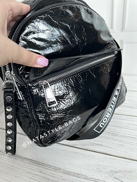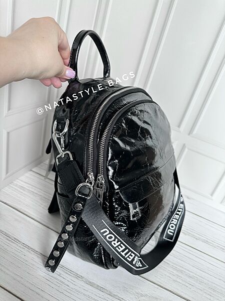 НОВИНКА!💥Класний, компактний, зручний та місткий лаковий рюкзачок-сумка на два окремих відділення.