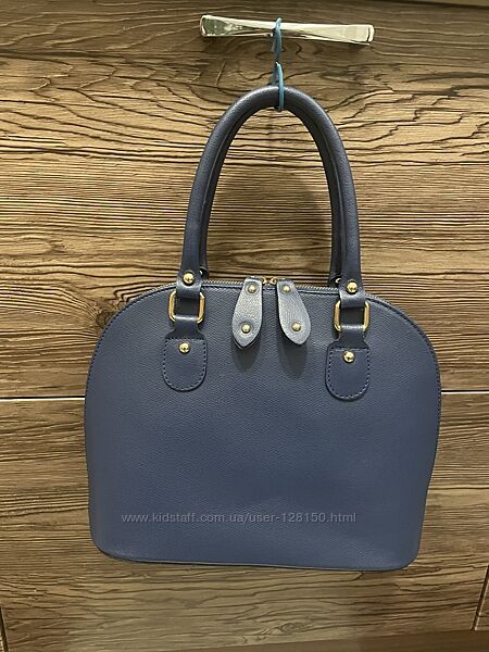 Сумка шкіряна, каркасна темно-синього кольору. Дуже якісна. Краіна виробник-Італія, а вони майстри в цій справі. Шкіра цупка, гарно тримає форму. Фурнітура дуже якісна. Має одне відділення, внутрішній карманчик на молнії та два внутрішніх для дрібничок. Сумка в стані нової, користувалась мало так як маю схожу.Заміри по дну: 31*12
