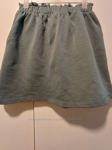 Спідниця ZARA р.10 на зріст 140 см, склад 100% бавовна - світшотна двунитка, всередні талії є резинка. Зелений колір.Б/в, стан на відмінно, жодних вад.