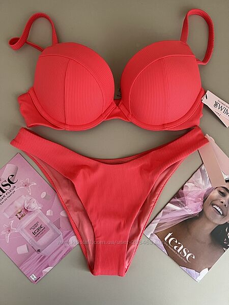 Кораловий верх у розмірі 32С (70С) 34D (75D) і низ у розмірі XS S M.