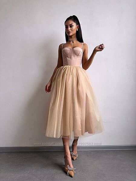 Інші вечірні сукні нашого магазину, Ви можете подивитися за цим посиланням: https://www.kidstaff.com.ua/user-anno-1997582/sect...Сукня міді із чашечками з пишною спідницею
