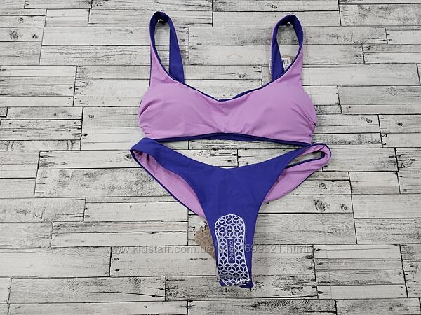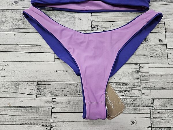 Двосторонній купальний костюм, що складається з майки-топа та двосторонніх плавок бразиліана із низькою лінією талії.Двостороння майка-топ для дівчат з невеликим та середнім розміром грудей: