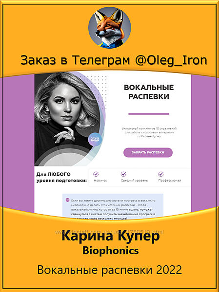 Подробное описание: Карина Купер Вокальные распевки 2022 и другие курси