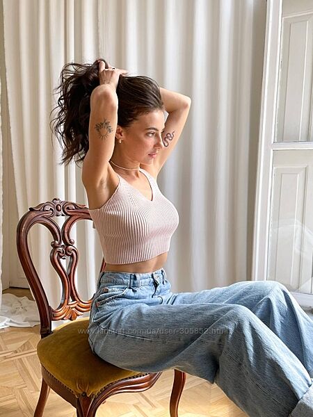 Вʼязаний топ з бавовниПалітра: чорний, пудра, жовтий