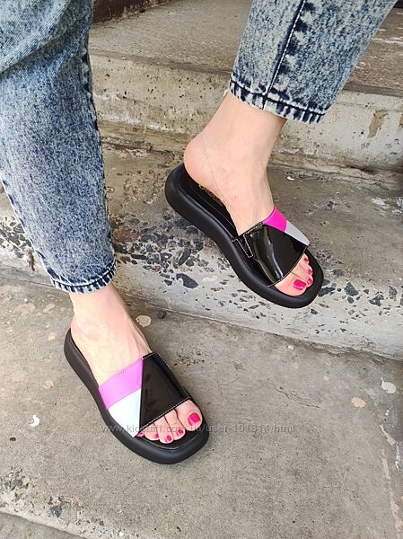 Подробное описание: Шкіряні зручні шльопки на літо Класна комбінація кольорів