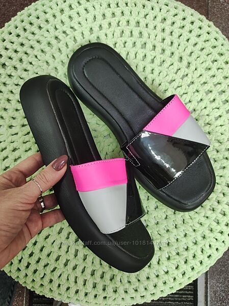 Шкіряні зручні шльопки на літо Класна комбінація кольорів