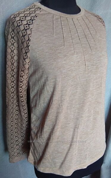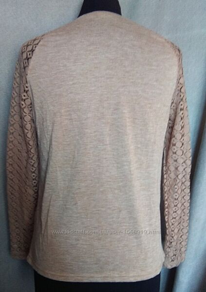 Нова з бірками брендова якісна дуже гарна і стильна ошатна комбінована трикотажна блуза з ажурними рукавами. Замір: ПОГ-46-49, рукава від горловини-67, довжина-60. Тягнеться.Другие объявления продавца