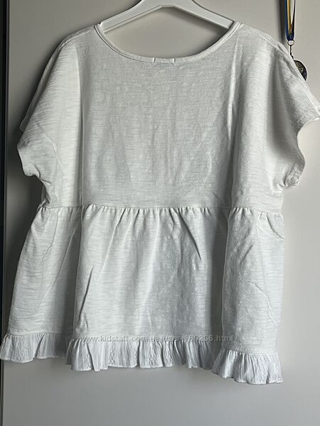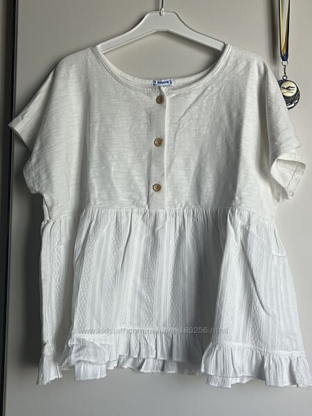 Літня кофтинка ТМ Mayoral (Іспанія) кремового кольору. Цікавий крой з тканин різної текстури, А-образний силует. Декоративні ґудзики. Тканини - бавовна.Розмір XS, S на зріст 164 см