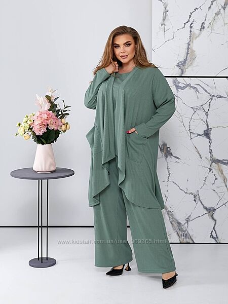 Подробное описание: Прогулянковий костюм-трійка, рубчик. Розміри вiд 48 до 58