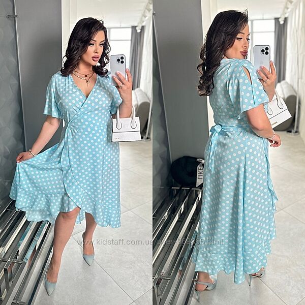Неймовірно стильне і гарне плаття з легкого софта. Сукня з ефектом запаху, фіксується на зав´язку всередині і пояс зовні, за рахунок чого обхват грудей і талії можна регулювати. Рукав виконаний у формі «крильця». По низу спідниці декоровано воланом.