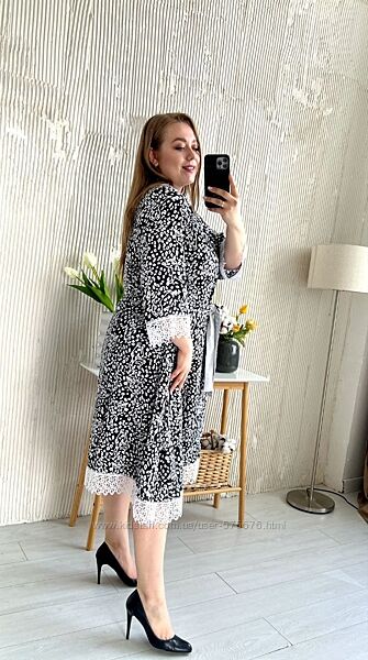 Подробное описание: р.52 до 72р. Сукня супер батал штапель та мереживо
