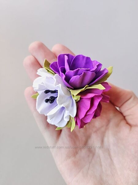 Легкі та ніжні букетики з фоамірану - чудовий спосіб прикрасити зачіску вашої дівчинки.Діаметр букетика - 7 см, тому він не буде занадто громіздким, але й не загубиться серед локонів.