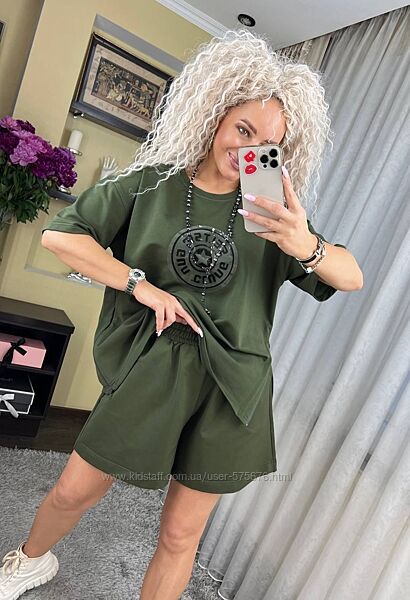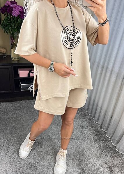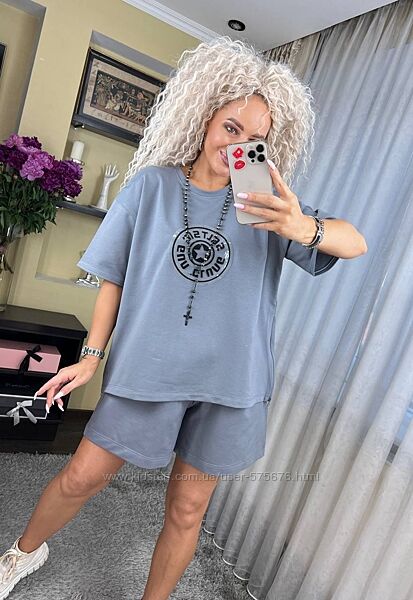 Подробное описание: oversize 44-50 костюм вільного крою футболка та шорти