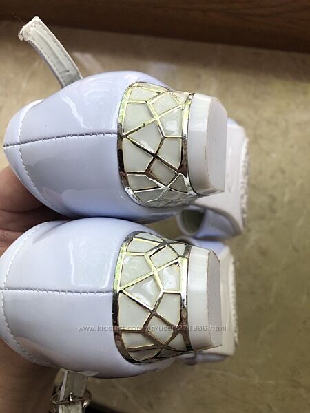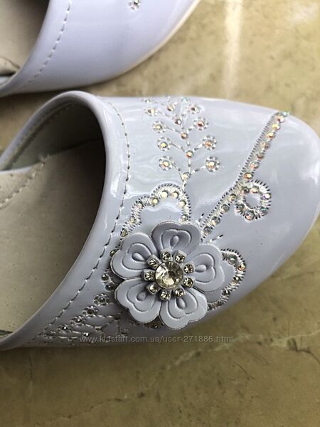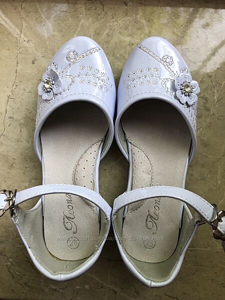 Неймовірно гарні туфельки на вузьку та середню ніжку Каблучки не стесані, вся краса збережена. Стан нових, одягали 2 рази: на свято і фотосесію. Трішки помітні сліди клею, але візуальноце вигляд не портить. Матеріал штучний, але якісний. ВАЖЛИВО!!! Висилаю без повернення, я не торгую, а просто продаю наші речі нові та б/у в один бік. Готуємося до виїзду, тому повернення немає...