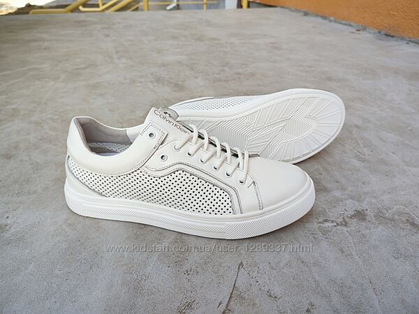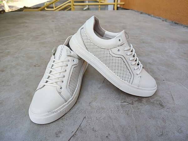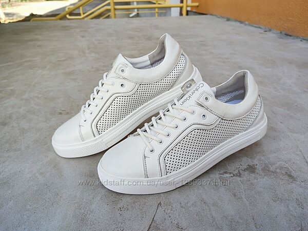 Мужские кожаные легкие летние кеды Calvin Klein из перфорированной белой кожи на белой подошве.Стильные и очень удобные кеды изготовлены из высококачественной перфорированной натуральной кожи турецкого производства. Обувь выполнена в классическом лаконичном дизайне.